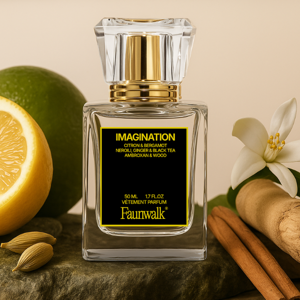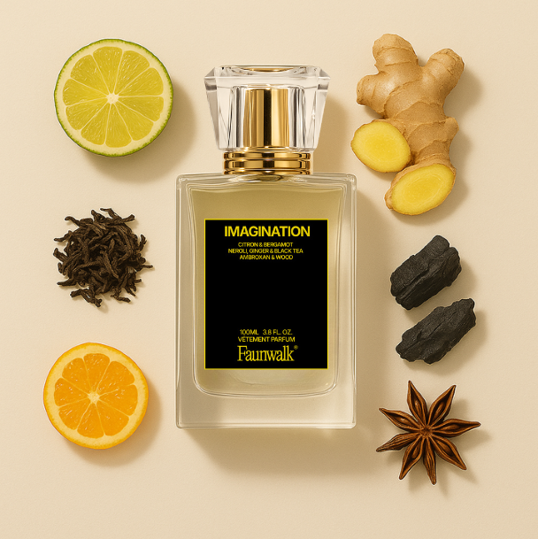 Imagination (inspired by Louis Vuitton’s Imagination) begins with a blast of citrus that doesn’t just smell fresh — it feels unstoppable. Citron and bergamot open sharp and luminous, the kind of notes perfumers often shy away from. But we don’t. We embrace their edge and temper them with smoky black tea and deep, grounding woods. The result is a citrus scent that doesn’t fade away into nothing — it evolves, deepens, and lingers with quiet strength. It’s the feeling of being composed in chaos. Crisp, elevated, and effortlessly sophisticated.